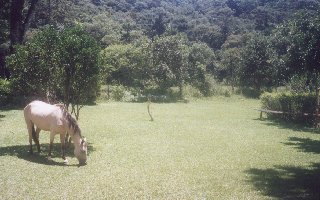 ÁREA DE CAMPING Na parte de trás da pousada existe uma bela área verde onde você pode acampar com toda a segurança e tranquilidade. E pode aproveitar para refrescar nas águas do rio Preto, que passa no fundo da área de camping